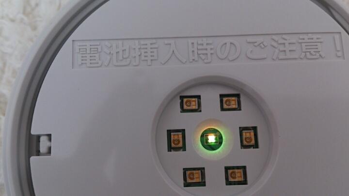 赤と緑のLEDが光ることで黄色の光を作り出していることが目視で確認できました。